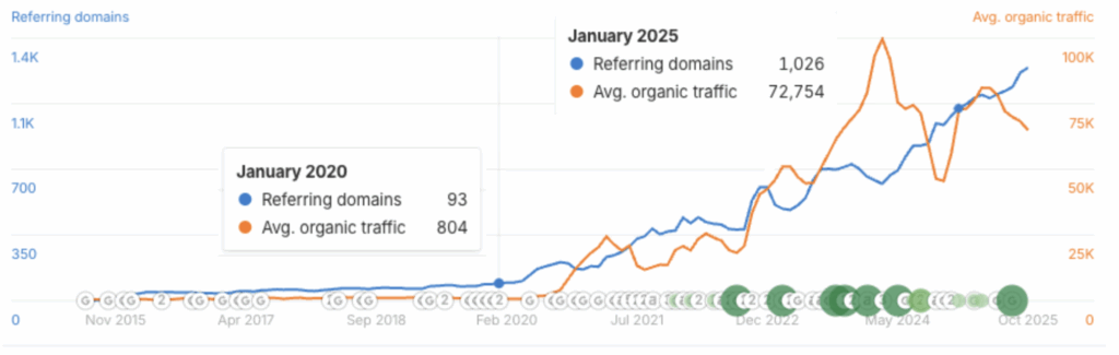 - 2024-2025: Organic traffic down only 8% post launch of AI Overviews
